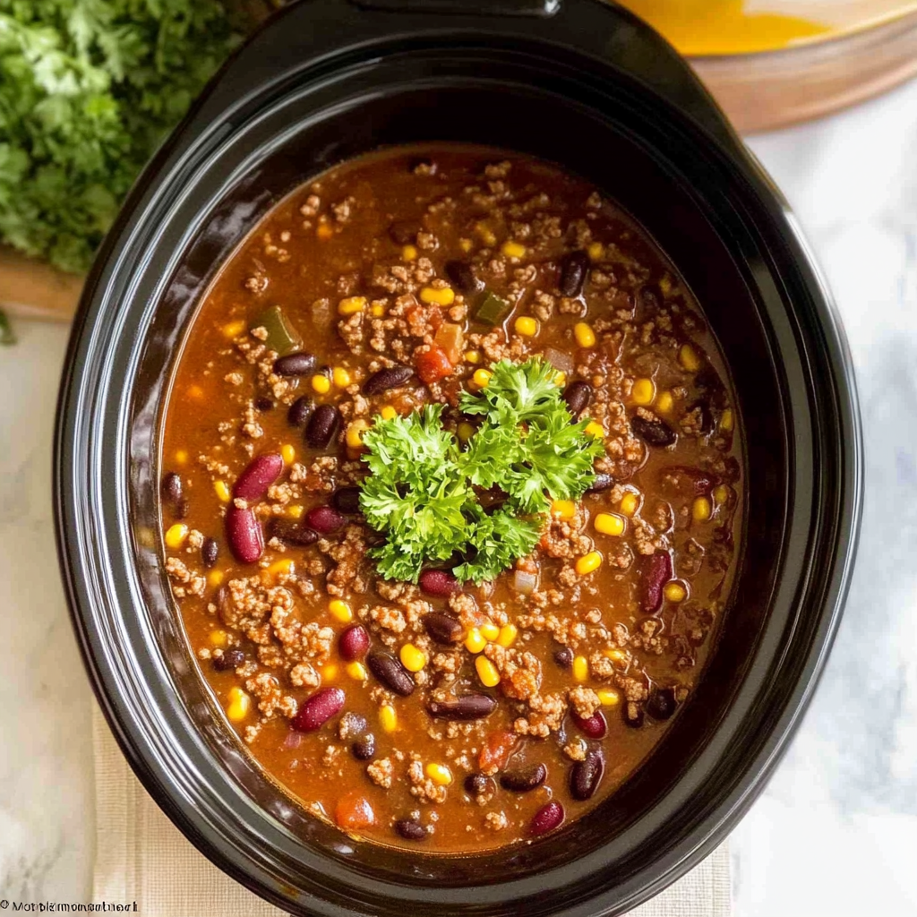 Keywords: - For added flavor depth, brown the meat before adding it to the crockpot. - Customize by swapping black beans with kidney beans or adding bell peppers for extra crunch. - Store leftovers in an airtight container in the fridge for up to three days.