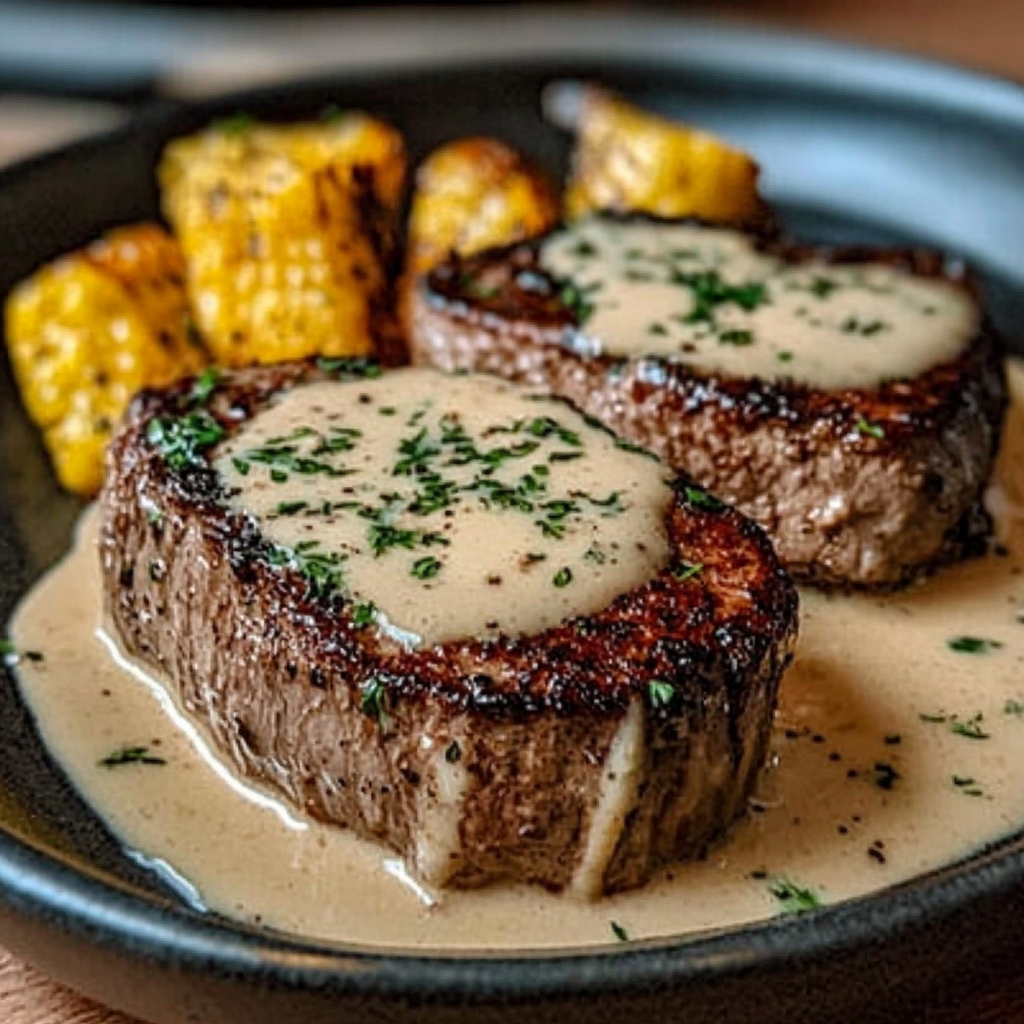 - Slice the steak against the grain and drizzle with bourbon garlic cream sauce before serving.