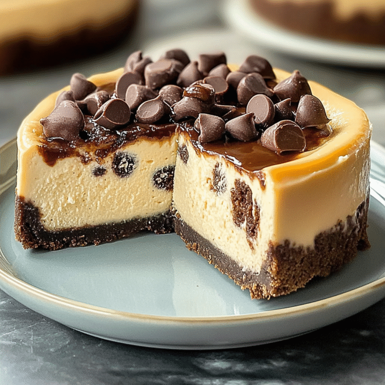 Satisfy your sweet tooth with this rich Cookie Dough Cheesecake, featuring a creamy filling and chunks of edible cookie dough on a buttery graham cracker crust. Perfect for any occasion, this dessert transforms gatherings into memorable moments. Whether it’s a birthday celebration or a cozy night in, each slice promises blissful indulgence.