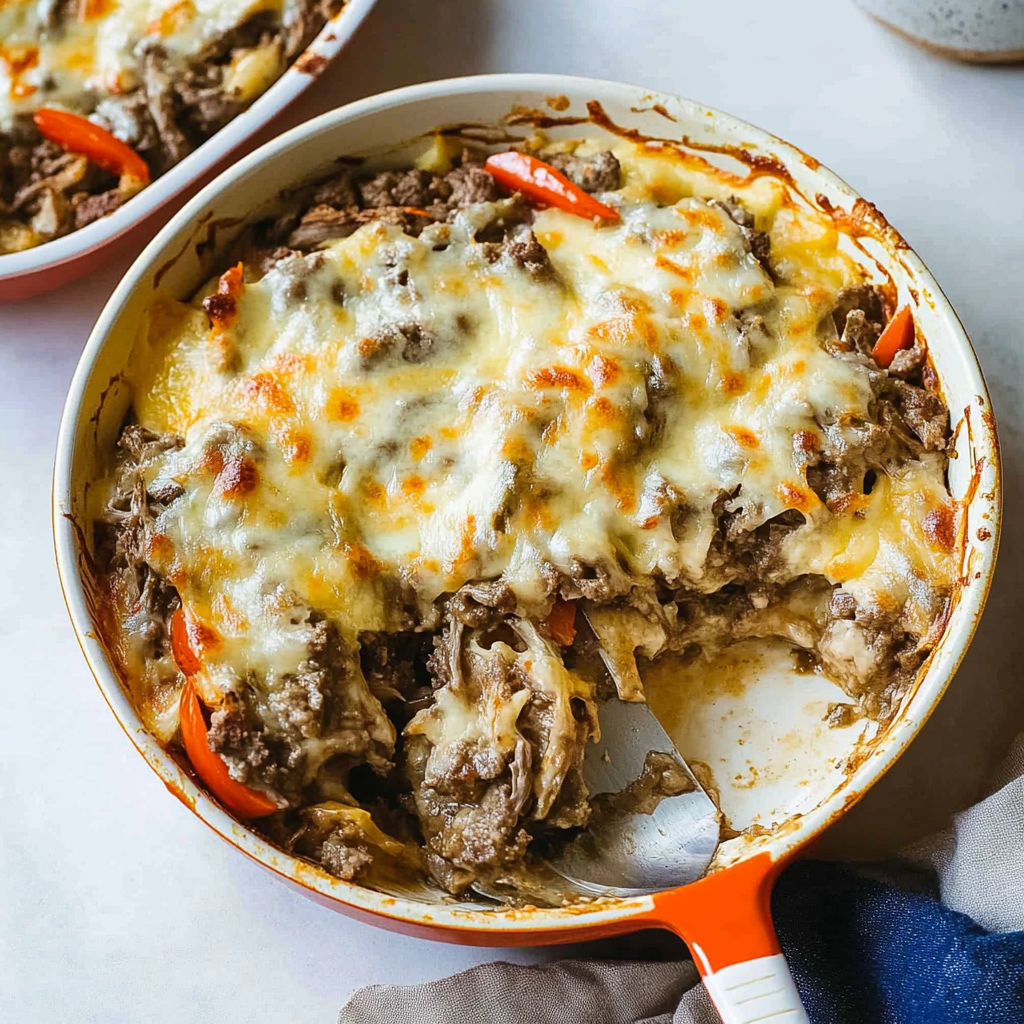 And there you have it! Your new favorite comfort food recipe is ready to impress family and friends alike. Enjoy every cheesy bite of this Cheesy Low Carb Philly Cheesesteak Casserole! For more inspiration, check out this Cajun lasagna recipe recipe.