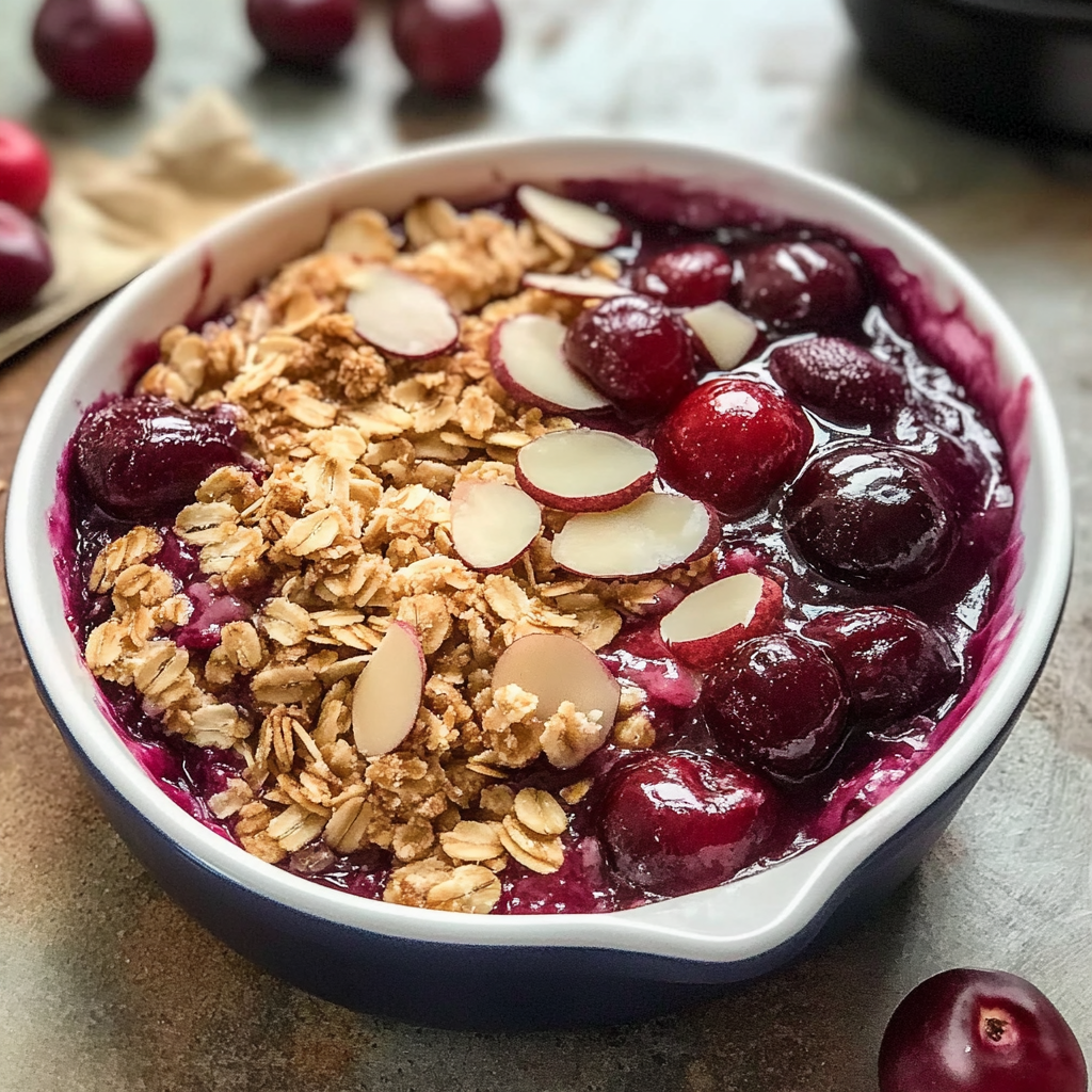 [info_box title=”You Must Know”] The Cherry Almond Maple Crisp Delight is a dessert that perfectly balances sweet and tart flavors. Its crunchy topping contrasts beautifully with the soft, juicy fruit. This dish is a crowd-pleaser at gatherings, and the aroma while baking will have everyone swooning. [/info_box]