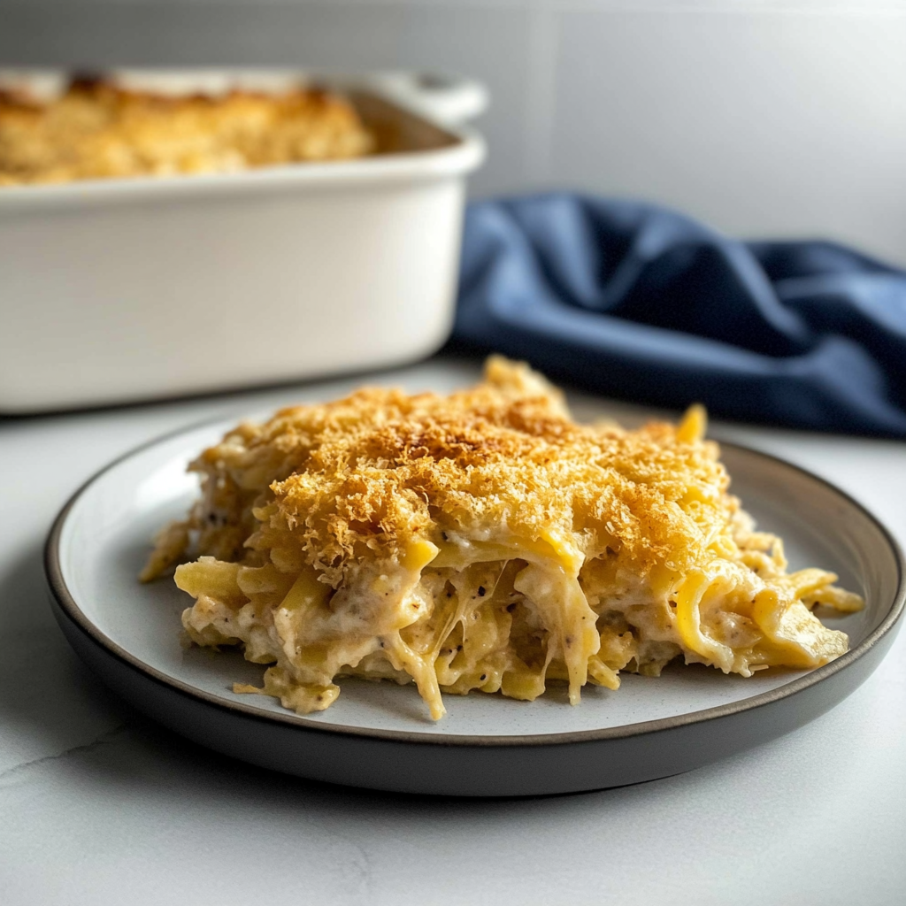 Keywords: Feel free to substitute turkey for chicken or use different cheeses like gouda or cheddar for added flavor. Adding vegetables such as broccoli can enhance both nutrition and taste. For extra crispiness, broil the casserole briefly at the end of cooking.