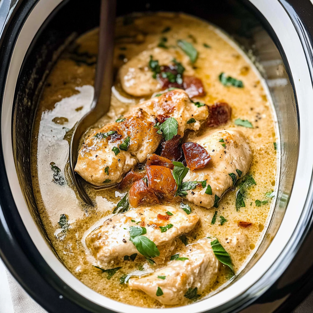 - (Optional) In a skillet, sear chicken breasts over medium-high heat until golden brown, then transfer to the crockpot.
