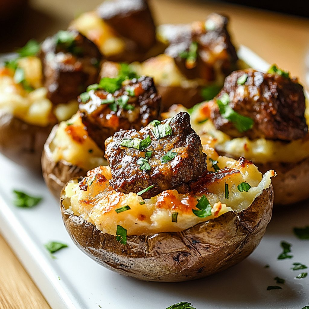 Indulge in the ultimate comfort food experience with our Loaded Baked Potato topped with succulent steak bites. This hearty dish features fluffy russet potatoes baked to perfection and generously loaded with juicy steak, melted cheddar cheese, crispy bacon, fresh chives, and a dollop of sour cream. Perfect for game nights or cozy family dinners, this recipe brings warmth and satisfaction in every bite. With easy preparation steps and customizable toppings, you can tailor it to your taste preferences. Gather around the table and enjoy this delightful meal that’s sure to impress!